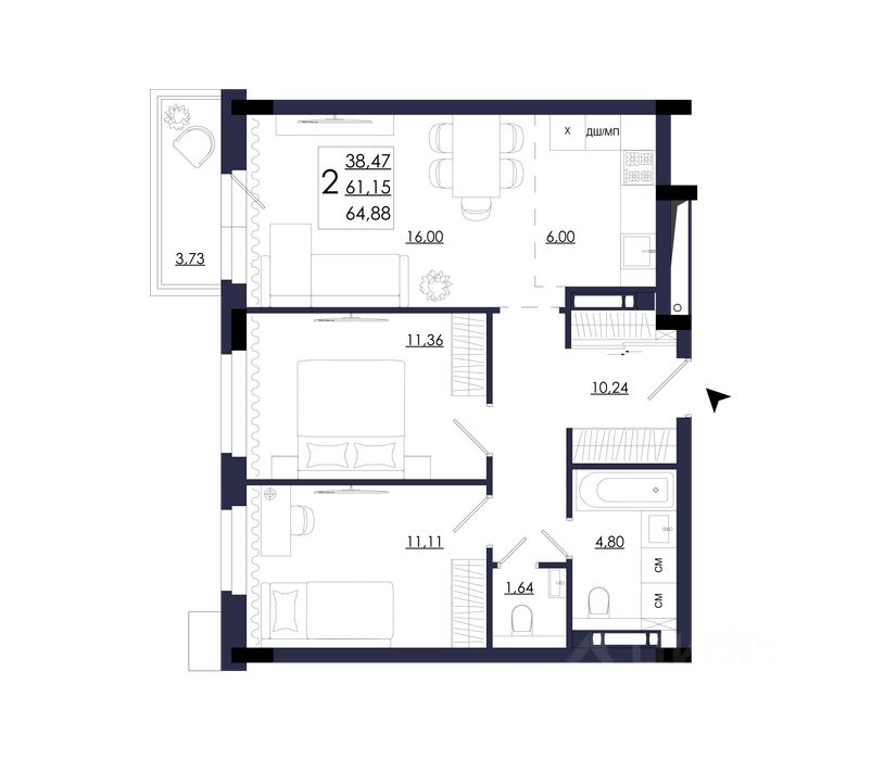 Продаётся 2-комнатная квартира в строящемся доме (Корпус 1), срок сдачи: I-кв. 2028, общей площадью 64.52 кв.м., на 14 этаже. Новый жилой комплекс "Я-Мечтатель" от застройщика "СЗ Город Будующего" расположен по адресу Россия, муниципальное образование Смоленск, Заднепровский район.