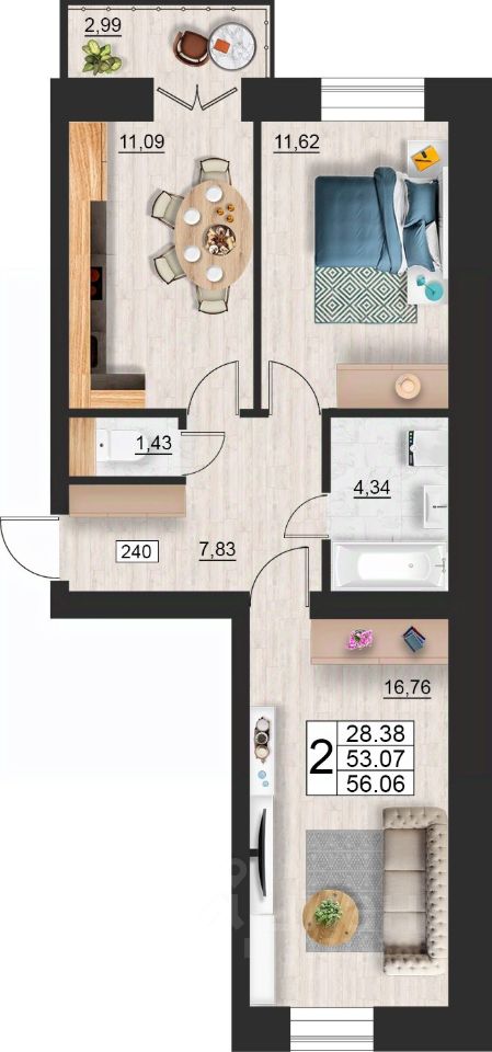 Общая площадь56,06 м²