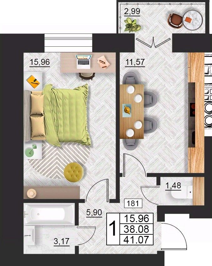 Продаётся 1-комнатная квартира в строящемся доме (дом 9 (секции 3,4)), срок сдачи: II-кв. 2027, общей площадью 41.07 кв.м., на 8 этаже. Расположение, транспортная доступность
