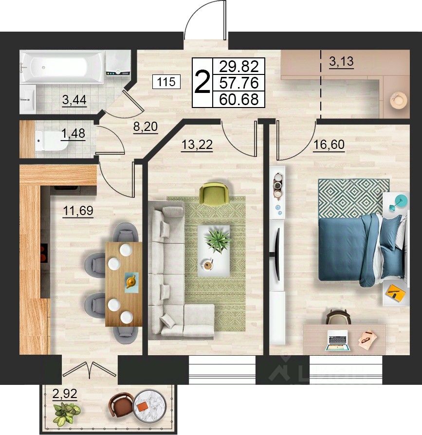 Общая площадь43,44 м²