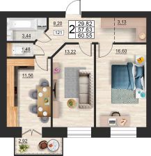 Продаётся 2-комнатная квартира в строящемся доме (дом 9 (секции 3,4)), срок сдачи: II-кв. 2027, общей площадью 60.55 кв.м., на 5 этаже. Расположение, транспортная доступность