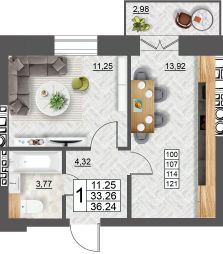 Продаётся 1-комнатная квартира в строящемся доме (дом 5 (секции 1,2)), срок сдачи: II-кв. 2027, общей площадью 36.24 кв.м., на 6 этаже. Расположение, транспортная доступность