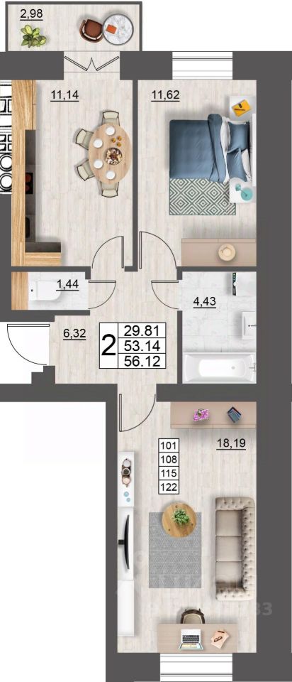 Общая площадь56,12 м²