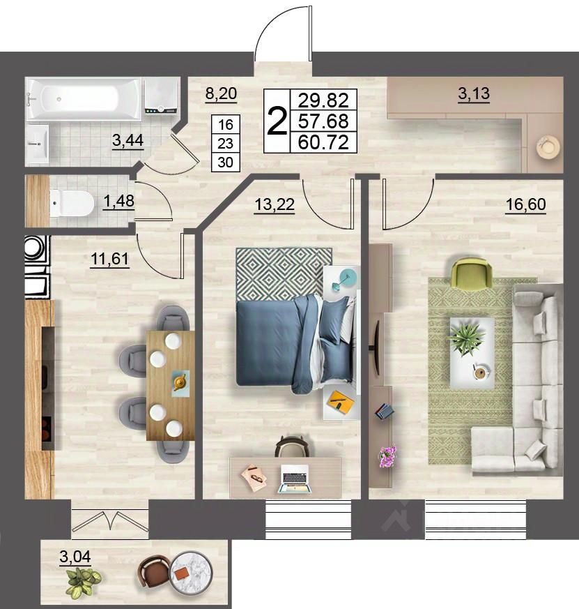 Продаётся 2-комнатная квартира в строящемся доме (дом 5 (секции 1,2)), срок сдачи: II-кв. 2027, общей площадью 60.72 кв.м., на 3 этаже. Расположение, транспортная доступность