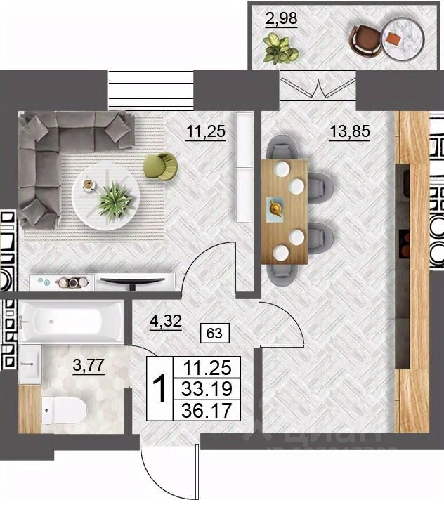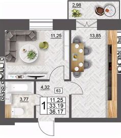 Продаётся 1-комнатная квартира в строящемся доме (дом 5 (секции 1,2)), срок сдачи: II-кв. 2027, общей площадью 36.17 кв.м., на 10 этаже. Расположение, транспортная доступность