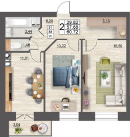 Продаётся 2-комнатная квартира в строящемся доме (дом 5 (секции 1,2)), срок сдачи: II-кв. 2027, общей площадью 60.72 кв.м., на 5 этаже. Расположение, транспортная доступность