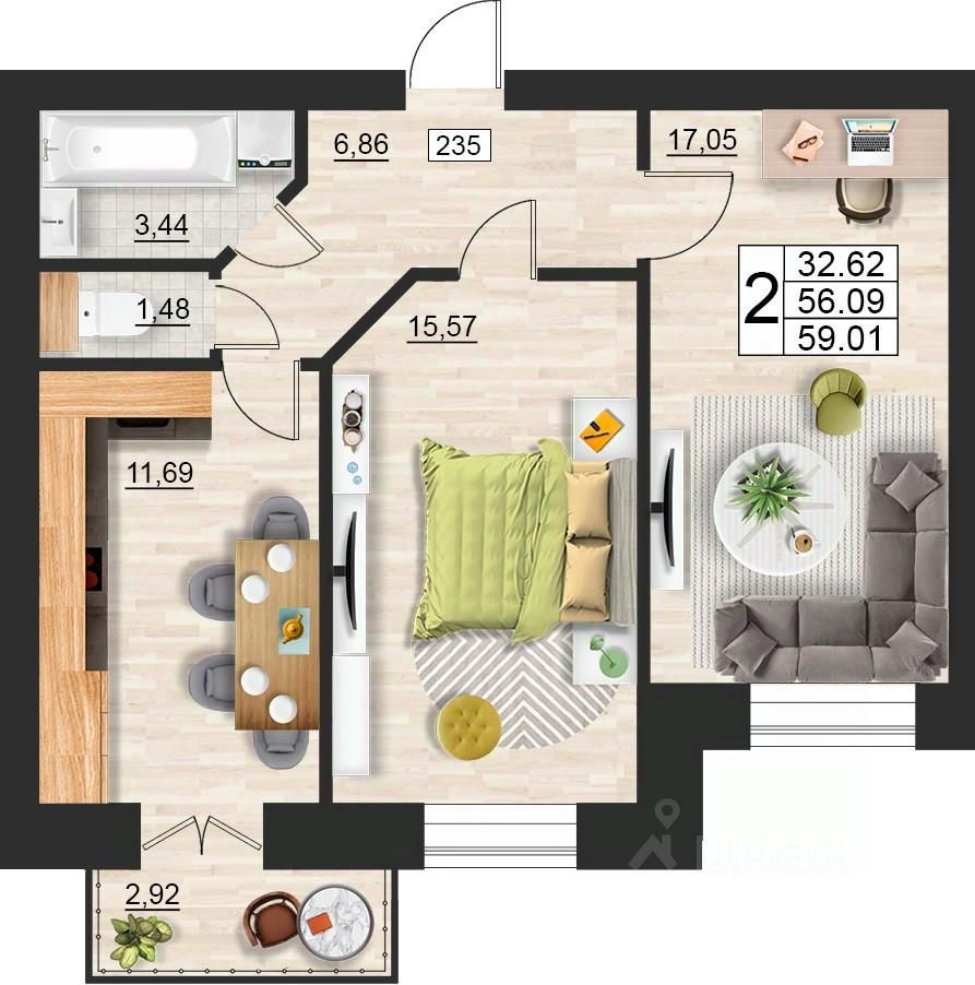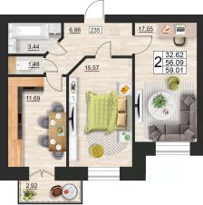 Общая площадь59,01 м²