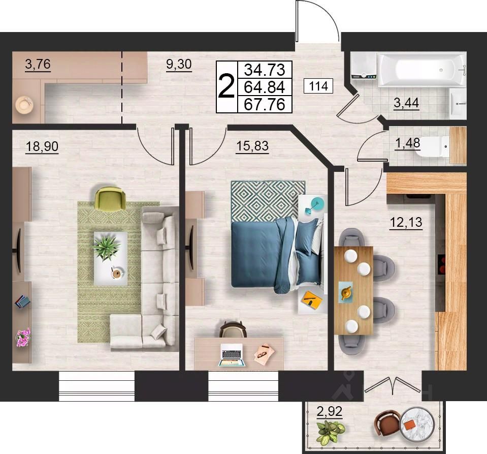 Продаётся 2-комнатная квартира в строящемся доме (дом 9 (секции 3,4)), срок сдачи: II-кв. 2027, общей площадью 60.68 кв.м., на 1 этаже. Расположение, транспортная доступность ЖК "Лазурный" - это многоквартирный жилой комплекс комфорт-класса, построенный в Ленинском районе - в 350 метрах от лесопарковой зоны, в 1,2 километрах от реки Кловка, в 2,1 километрах от берега реки Днепр, в десяти минутах езды на автомобиле до центра города (около 7,5 километров). До железнодорожного вокзала Смоленск-Центральный - 8,5 километров. От ближайшей к комплексу остановки городского транспорта отправляется несколько маршрутов по всему городу. В 3,8 километрах расположена зеленая зона - городской парк Реадовский, в центре которого находится памятник архитектуры Курган Бессмертия. В 1,1 километре - городская достопримечательность "Источник". Инфраструктура В соседнем с ЖК "Лазурный" доме расположен продуктовый магазин "Лаваш". На сегодняшний день ближайший к комплексу детский сад 57 - в 2,5 километрах, рядом с ним находятся Смоленский строительный колледж и медцентр-поликлиника "Семейный доктор". Смоленский автотранспортный колледж им. Е.Г. Трубицына - в 3,5 километрах, МБДОУ детский сад 78 Исток - в 3,1 километрах, МБОУ средняя общеобразовательная школа 21 им. Н.И. Рыленкова - в 2,5 километрах, детский сад 63 "Золотой петушок" в 2,5 километрах. На Краснинском шоссе, в пределах двух километров от ЖК, открыты: ТЦ "Этажи", магазины сантехники и электротоваров, кофейня "Чародейка", супермаркеты "Магнит" и "Семеновский", оптовый магазин продуктов "Лаваш". До ближайшего кинотеатра "Современник" 5,2 километра. Возле него работают универмаг "ЦУМ", расположено большое количество ресторанов и кафе. Надежность застройщика Строит ЖК "Лазурный" ООО "Континент" (предприятие зарегистрировано в апреле 2006 года), которое является дочерней компанией акционерного общества "Гражданстрой" (АО "Грас"), зарегистрированного 24 ноября 1993 года. Организация специализируется на создании архитектурных объектов, строительстве жилых домов, а также проводит строительно-монтажные и отделочные работы. Разрешение на строительство дома 6 выдано 17 апреля 2017 года, окончание запланировано на четвертый квартал 2019-го. Строительство дома 7 начато в 2015 году, завершено в конце 2017-го. Дом 8 сдан 30 июня 2016 года. Архитектура Проектом масштабной застройки ЖК "Лазурный" предусмотрено создание более 20 домов с полным комплексом инфраструктурных объектов. На данный момент сдано два жилых корпуса, еще один в - процессе строительства. Наружные стены зданий трехслойные, сложены из силикатного кирпича, утеплены плитами "Пеноплекс", для облицовки использован декоративный силикатный кирпич в бежево-коричневых тонах. Дом 6 - 12-этажное жилое здание на 530 квартир. Дом 7 - 12-этажный, на 360 квартир (220 однокомнатных, 109 двухкомнатных, 31 трехкомнатная). Дом 8 - на 250 квартир (150 - однокомнатных, 70 - двухкомнатных, 30 - трехкомнатных). На первом этаже дома выделены помещения по