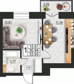 Продаётся 1-комнатная квартира в строящемся доме (дом 9 (секции 3,4)), срок сдачи: II-кв. 2027, общей площадью 33.93 кв.м., на 2 этаже. Расположение, транспортная доступность