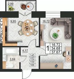 Продаётся 1-комнатная квартира в строящемся доме (дом 9 (секции 3,4)), срок сдачи: II-кв. 2027, общей площадью 37.67 кв.м., на 8 этаже. Расположение, транспортная доступность ЖК "Лазурный" - это многоквартирный жилой комплекс комфорт-класса, построенный в Ленинском районе - в 350 метрах от лесопарковой зоны, в 1,2 километрах от реки Кловка, в 2,1 километрах от берега реки Днепр, в десяти минутах езды на автомобиле до центра города (около 7,5 километров). До железнодорожного вокзала Смоленск-Центральный - 8,5 километров. От ближайшей к комплексу остановки городского транспорта отправляется несколько маршрутов по всему городу. В 3,8 километрах расположена зеленая зона - городской парк Реадовский, в центре которого находится памятник архитектуры Курган Бессмертия. В 1,1 километре - городская достопримечательность "Источник". Инфраструктура В соседнем с ЖК "Лазурный" доме расположен продуктовый магазин "Лаваш". На сегодняшний день ближайший к комплексу детский сад 57 - в 2,5 километрах, рядом с ним находятся Смоленский строительный колледж и медцентр-поликлиника "Семейный доктор". Смоленский автотранспортный колледж им. Е.Г. Трубицына - в 3,5 километрах, МБДОУ детский сад 78 Исток - в 3,1 километрах, МБОУ средняя общеобразовательная школа 21 им. Н.И. Рыленкова - в 2,5 километрах, детский сад 63 "Золотой петушок" в 2,5 километрах. На Краснинском шоссе, в пределах двух километров от ЖК, открыты: ТЦ "Этажи", магазины сантехники и электротоваров, кофейня "Чародейка", супермаркеты "Магнит" и "Семеновский", оптовый магазин продуктов "Лаваш". До ближайшего кинотеатра "Современник" 5,2 километра. Возле него работают универмаг "ЦУМ", расположено большое количество ресторанов и кафе. Надежность застройщика Строит ЖК "Лазурный" ООО "Континент" (предприятие зарегистрировано в апреле 2006 года), которое является дочерней компанией акционерного общества "Гражданстрой" (АО "Грас"), зарегистрированного 24 ноября 1993 года. Организация специализируется на создании архитектурных объектов, строительстве жилых домов, а также проводит строительно-монтажные и отделочные работы. Разрешение на строительство дома 6 выдано 17 апреля 2017 года, окончание запланировано на четвертый квартал 2019-го. Строительство дома 7 начато в 2015 году, завершено в конце 2017-го. Дом 8 сдан 30 июня 2016 года. Архитектура Проектом масштабной застройки ЖК "Лазурный" предусмотрено создание более 20 домов с полным комплексом инфраструктурных объектов. На данный момент сдано два жилых корпуса, еще один в - процессе строительства. Наружные стены зданий трехслойные, сложены из силикатного кирпича, утеплены плитами "Пеноплекс", для облицовки использован декоративный силикатный кирпич в бежево-коричневых тонах. Дом 6 - 12-этажное жилое здание на 530 квартир. Дом 7 - 12-этажный, на 360 квартир (220 однокомнатных, 109 двухкомнатных, 31 трехкомнатная). Дом 8 - на 250 квартир (150 - однокомнатных, 70 - двухкомнатных, 30 - трехкомнатных). На первом этаже дома выделены помещения по