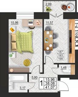 Продаётся 1-комнатная квартира в строящемся доме (дом 9 (секции 3,4)), срок сдачи: II-кв. 2027, общей площадью 41.07 кв.м., на 3 этаже. Расположение, транспортная доступность