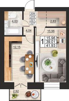 Общая площадь41,93 м²