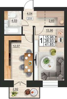 Продаётся 1-комнатная квартира в строящемся доме (дом 9 (секции 3,4)), срок сдачи: II-кв. 2027, общей площадью 41.85 кв.м., на 10 этаже. Расположение, транспортная доступность