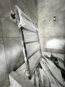закуплены - смеситель встроенный для душа с верхней лейкой/смеситель для умывальника встроенный/гигиенический душ фирмы Chrome/полотенцесушитель/стеклянная дверь в душ.