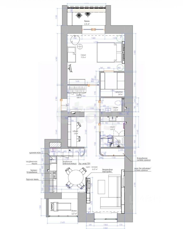 -Большая зона хранения ( встроенные шкафы)