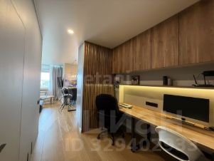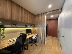 Между прихожей и кухней-гостиной обустроена рабочая зона.