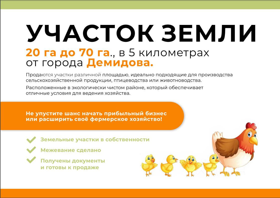 Продается ферма+ участок земли 5км от города Демидова, идеально подходящий для производства сельскохозяйственной продукции, птицеводства или животноводства. Расположенный в экологически чистом районе, который обеспечивает отличные условия для ведения хозяйства.