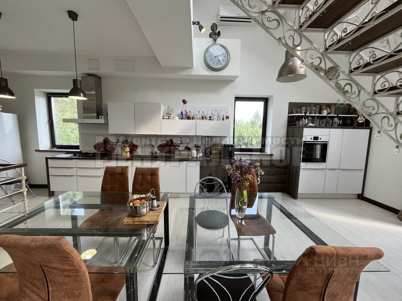 На первом этаже дома просторная кухня-гостиная более 80 м2 ,мастер-спальня с гардеробной и собственным санузлом. На втором мансардном этаже две жилые комнаты и санузел. В цокольном этаже расположены: спортивный зал, коридор, котельная и отапливаемый гараж на две машины с выходом в дом.