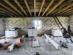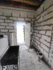 Дом площадью 201 кв метр, построен по проекту с соблюдением технических требований, из смешанного материала: монолитный ленточный фундамент, кирпичный цоколь, стены из газосиликатного 400 блока, облицован декоративным кирпичом, крыша металлочерепица. Установлены пластиковые окна. Сделаны перекрытия второго этажа, на 1м этаже планировка свободная. Потолки высокие 3,2м!!