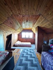 Двухэтажный дачный дом расположен вблизи города, что обеспечивает удобный доступ к инфраструктуре при сохранении преимуществ загородной жизни. Дом выполнен с деревянной внутренней отделкой, создающей уютную атмосферу и экологичный микроклимат. На первом этаже находится просторная гостиная с печью, которая не только обогревает помещение, но и добавляет интерьеру традиционный колорит. Второй этаж отведен под спальные зоны, обеспечивая приватность. Дополнительным преимуществом является большой погреб, идеально подходящий для хранения урожая и домашних заготовок.