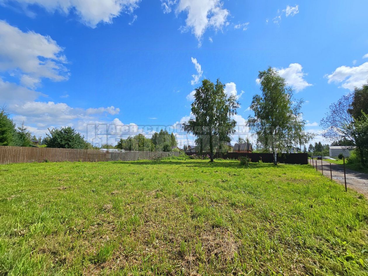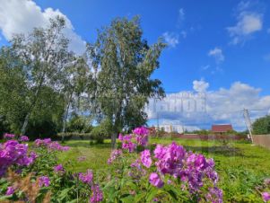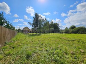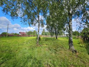 Участок выровнен, для уюта оставлены 3 березки, с 2-х сторон огорожен соседским забором.