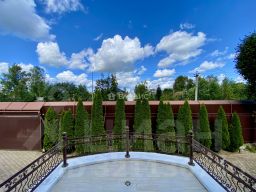 На участке установлена система автополива растений, многолетние туи, черешня, слива, кедр.