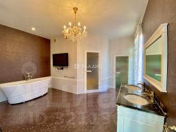 В доме 3 спальни, 1 мастер-спальня с хамом, кухня-гостиная, 2 с/у, спортивный зал, кабинет, домашний кинотеатр, дровяной камин отделан итальянским мрамором.