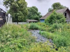 Большим преимуществом является то, что дом очень удачно расположен: улица не проездная, тихая, участок крайний к реке, одна минута ходьбы от брода через реку Каспля. Вода в реке прозрачная и чистая, дети купаются постоянно.