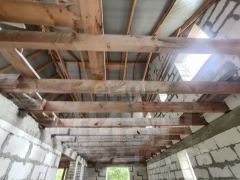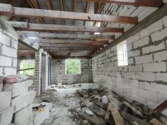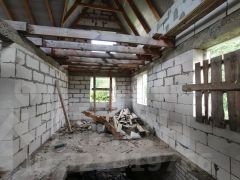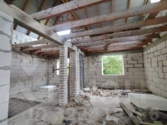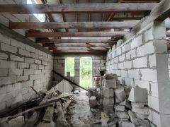 Дом построен из пеноблока, фундамент кирпич, фасад утеплен и оштукатурен. Сделаны перекрытия второго этажа. на половину площади фундамента сделан подвал.