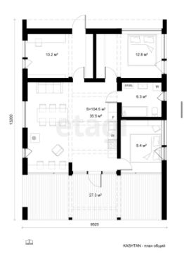 - просторная гостиная, объединенная с практичной кухонной зоной;