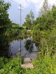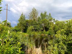 Возле участка находится живописный пруд с камышами.