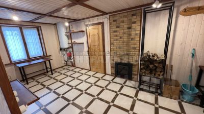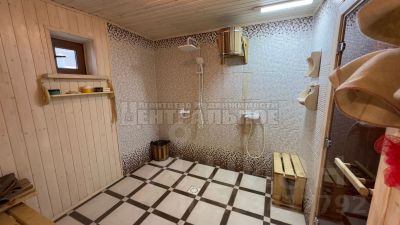 На территории есть отличная баня 6х9, на дровах! В бане - деревянный пол, стены обиты вагонкой, комната отдыха с большим ТВ, окна в пол. стол , угловой диван из непромокающей ткани, предбанник, помывочная и парная.