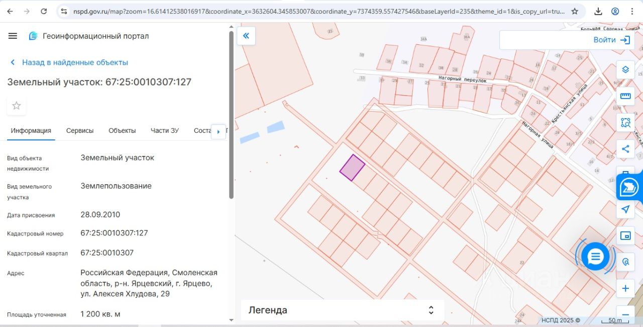 Кадастровый номер: 67:25:0010307:127.