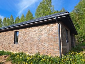 Дом построен на ленточном фундаменте глубина 1,5 метра. Стены пеноблок, облицован дорогим кирпичом . Утепление по фасаду 200мм. Полы залиты(стяжка бетонная), Также сделано дорогое остекление с ламинацией профиль 72мм вегаавангард. , сделана вытяжка . Крыша с водостоками. Все качественно и красиво!