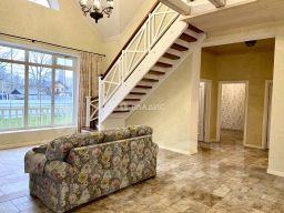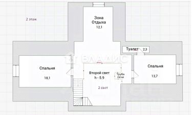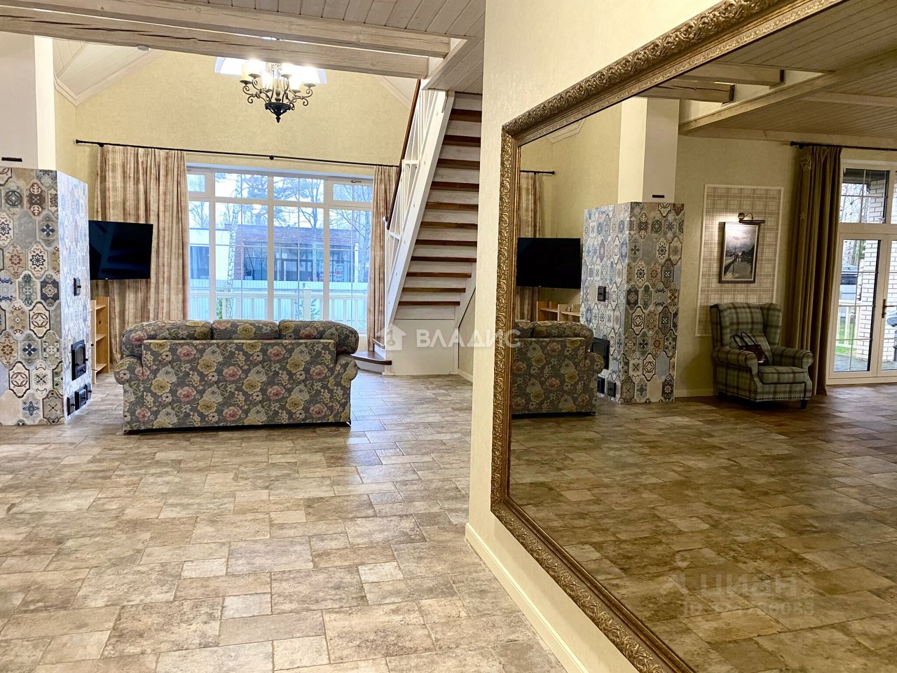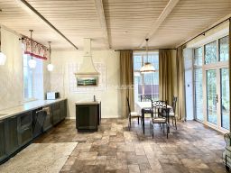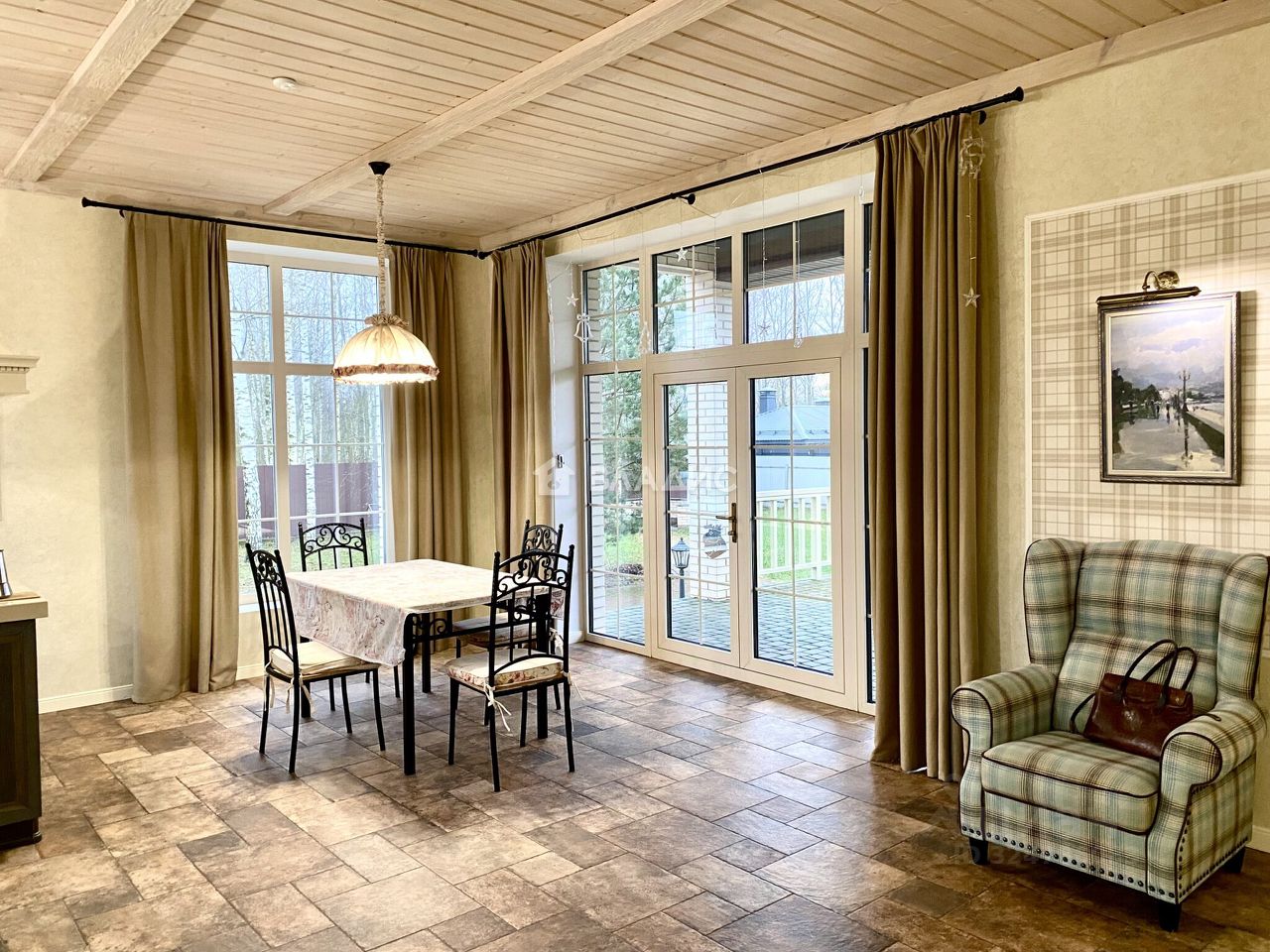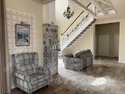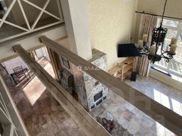 Высота потолков 3 метра, есть "второй свет", где высота достигает 5,9 метров и этот элемент придает простор и масштабность дому.