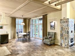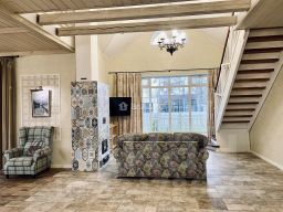 В доме есть печь голландка, которая создает уютную атмосферу.