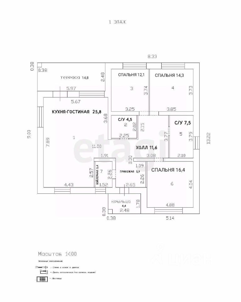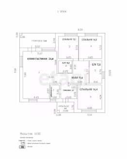 Дополнительно: 2 с/у, гардероб, холл, терраса.