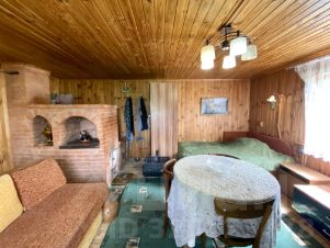 Дом 1998 года строительства, сруб, обложен кирпичом. Ленточный фундамент, отмостка. Печное отопление + камин на втором этаже. Своя скважина 19.5 м, с насосом. Крыша шиферная с отливами. В доме на первом этаже из помещений кухня с большой кладовой (где, при желании, можно установить санузел), гостиная с печкой (печь с лежаком), на втором этаже комната с камином и спальная комната.