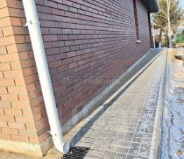 По периметру дома — отмостка с водостоком.