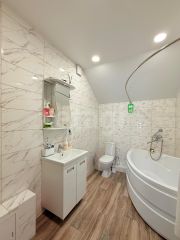 Дом построен на прочном фундаменте, пеноблок и облицован кирпичом, обложен кирпичом. Крыша сделана двухскатная. Электричество , газ, вода централизованные, Канализация - 2 септика большой глубины.