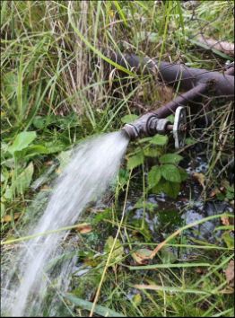 Водопровод сезонный, проведен на участок. Вода из артезианской скважины, полностью пригодная для питья.