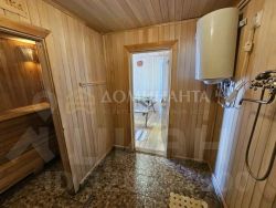 Банный комплекс: Печь Husqvarna (дорогой, качественный сегмент). Полки из липы (экологично, приятная текстура). Помывочная с плиточным полом (удобно и гигиенично). Также есть телевизор.