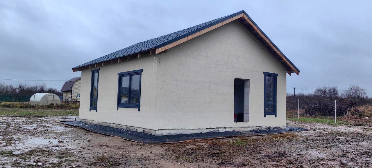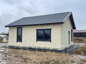 Одноэтажный дом общей площадью 64 м2 с двумя комнатами и террасой под черновую отделку, что позволяет воплотить ваши собственные дизайнерские идеи.