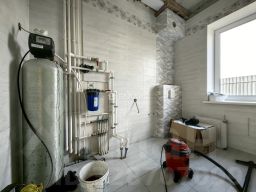 Дом построен из дорогих, качественных материалов. Перекрытия - Ж/Б плиты, крыша металлочерепица. В доме все коммуникации, индивидуальное отопление. На первом этаже - теплые полы. Все функционирует.