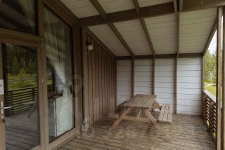 - Панорамное остекление, закрытая терраса со столом;
