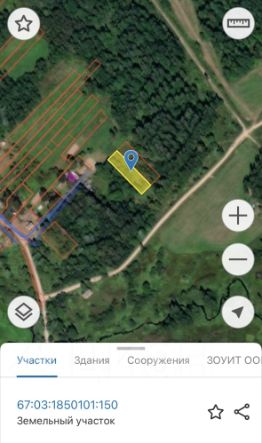 Участок размером: 42м*72м расположен в 1км от асфальтированной дороги , 25км от г. Гагарин, 5 км от Минского шоссе