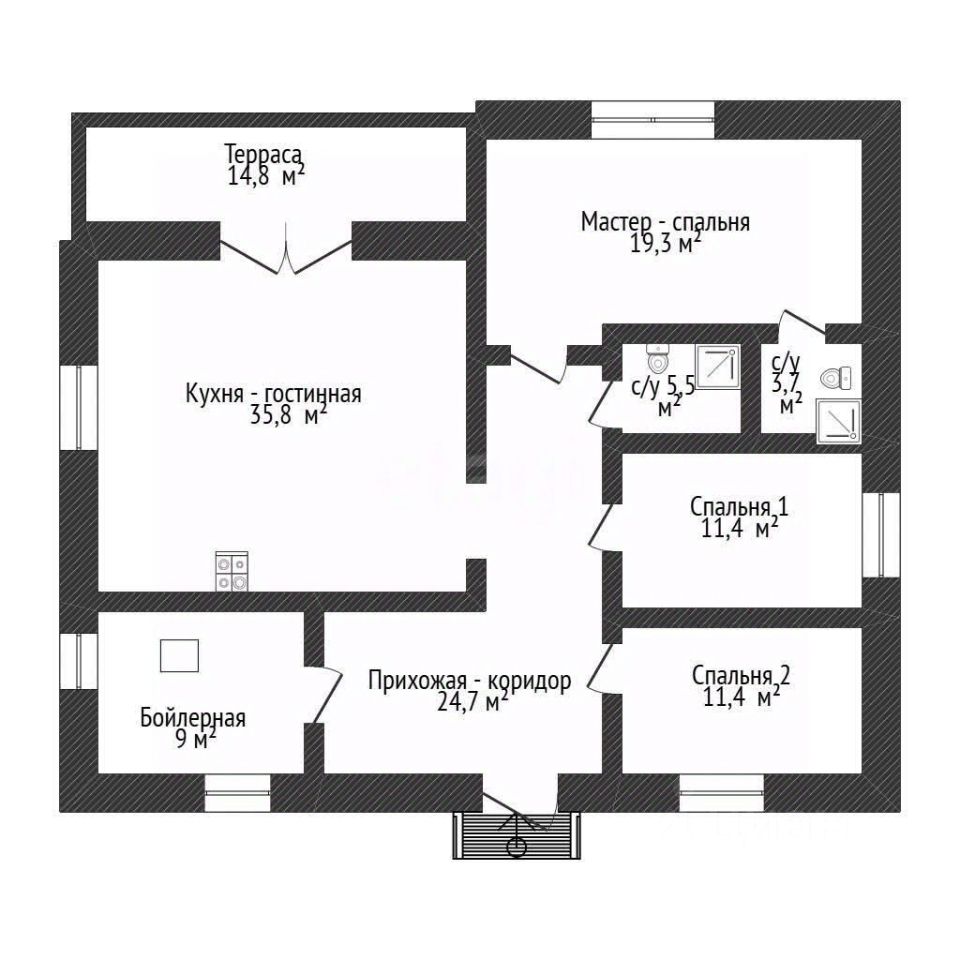 • Три спальни (одна — мастер-спальня).