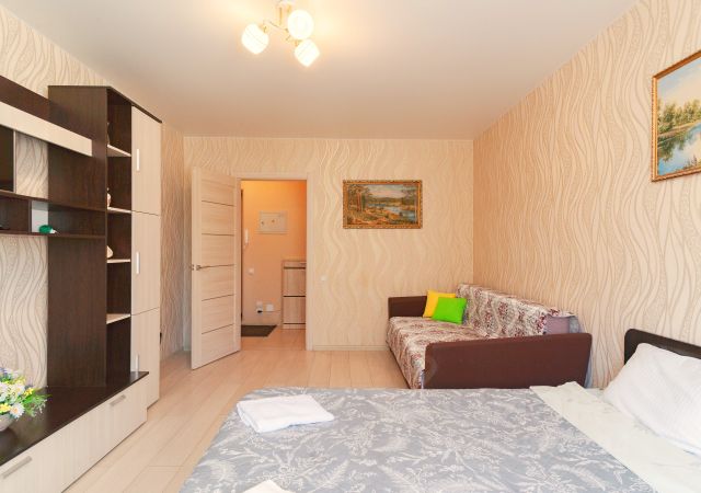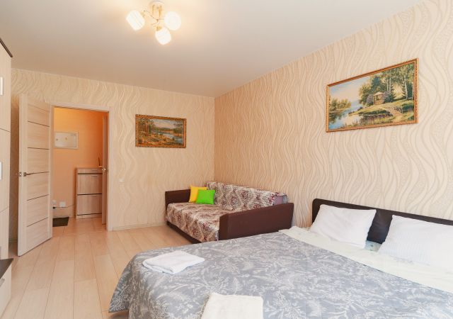 Большая двуспальная кровать, большой двуспальный диван, четыре спальных места.